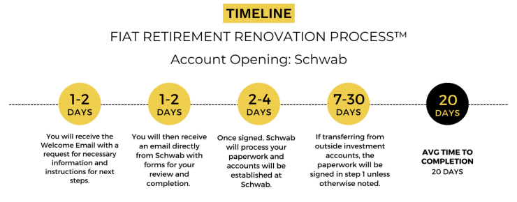 Once your accounts are established, our onboarding team will send over logins to our client portal. The Fiat website (hosted by Orion) will synchronize with your Charles Schwab accounts a few days after creation.